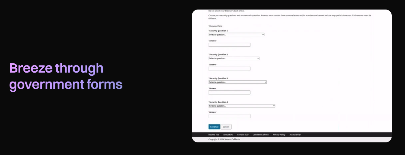 First, you need AI-powered form detection that can identify fields, understand labels, and determine data requirements dynamically. Traditional OCR falls short here because government forms often have complex layouts, conditional fields, and varying formats across different agencies.
